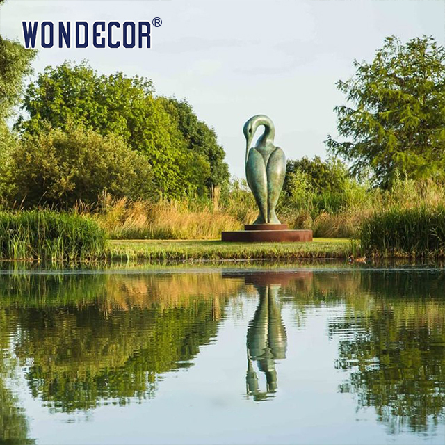 Las esculturas de aves acuáticas se utilizan a menudo en oficinas de ventas, patios, parques y otros lugares para transmitir una atmósfera pacífica y dinámica a través de los movimientos de las aves, como extender sus alas y descansar. Por ejemplo, la escultura de una garceta blanca se encuentra al borde de una piscina de agua, y cuando el viento sopla sobre la superficie del agua, la sombra del ave se balancea, convirtiéndose en el punto central visual. La instalación interactiva de fuentes de agua mejora el impacto visual y la interacción a través del diseño de perforación de arte de talla local.