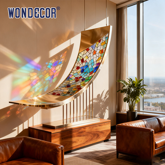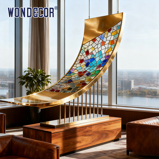 - Excelente durabilidad:El acero inoxidable ofrece una fuerte resistencia a la corrosión y la deformación, manteniendo la forma y el brillo de la escultura con el tiempo.El vidrio pintado de alta dureza proporciona una excelente resistencia a los impactos y a las intemperie, evitando daños y desvanecimiento por colisiones menores o cambios ambientales, reduciendo así los costes de mantenimiento y satisfaciendo las necesidades operativas a largo plazo del hotel.