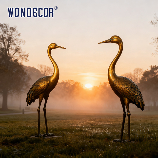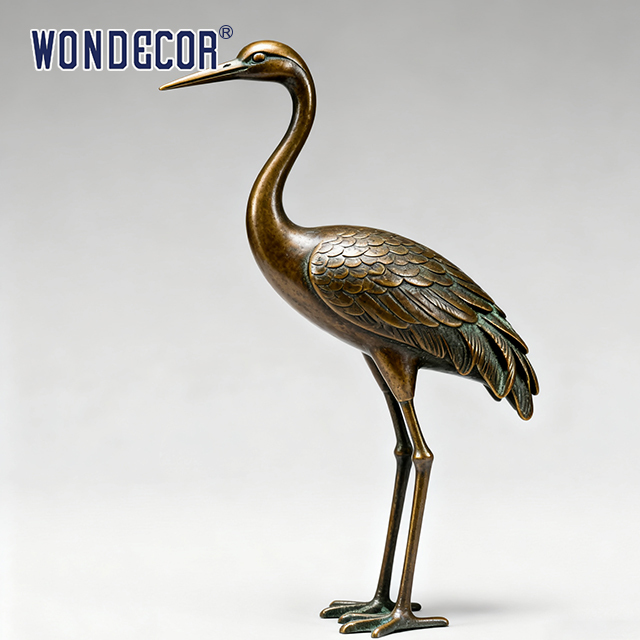 - Unique aesthetic and cultural symbolic value: Cranes hold a high cultural status in both Eastern and Western cultures. In Eastern culture, they symbolize longevity, auspiciousness and purity; in Western culture, they are associated with elegance and guardianship. The retro-style shape design combined with the thick and mottled texture of bronze not only restores the simple charm of traditional sculptures, but also gives the crane's elegant posture a stronger sense of historical depth.