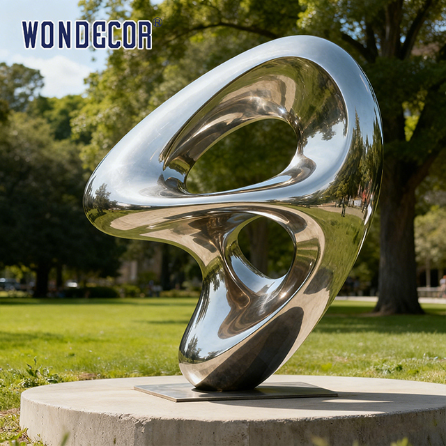 | Nombre | Escultura aerodinámica grande de acero inoxidable de estilo moderno para exteriores para jardín y cé | Color | plateado |