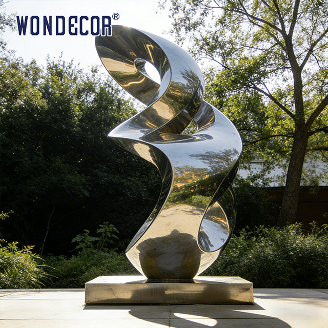 Esta escultura de acero inoxidable "Infinite Essence", con su forma fluida de símbolo del infinito, es una instalación artística ideal para paisajes al aire libre y espacios comerciales.Fabricados a partir de acero inoxidable de acabado espejo y de acero polido, no sólo refleja la vegetación circundante y la claraboya bajo luz natural para crear efectos dinámicos de luz y sombra que evolucionan con el medio ambiente,Pero también tiene una excepcional resistencia a las condiciones climáticas, a prueba de corrosión y a los rayos UV., mantiene una apariencia brillante y brillante al aire libre durante décadas con un mantenimiento mínimo.sirve como un punto focal visual llamativo mientras transmite la connotación artística del infinito, ciclicidad y vitalidad.